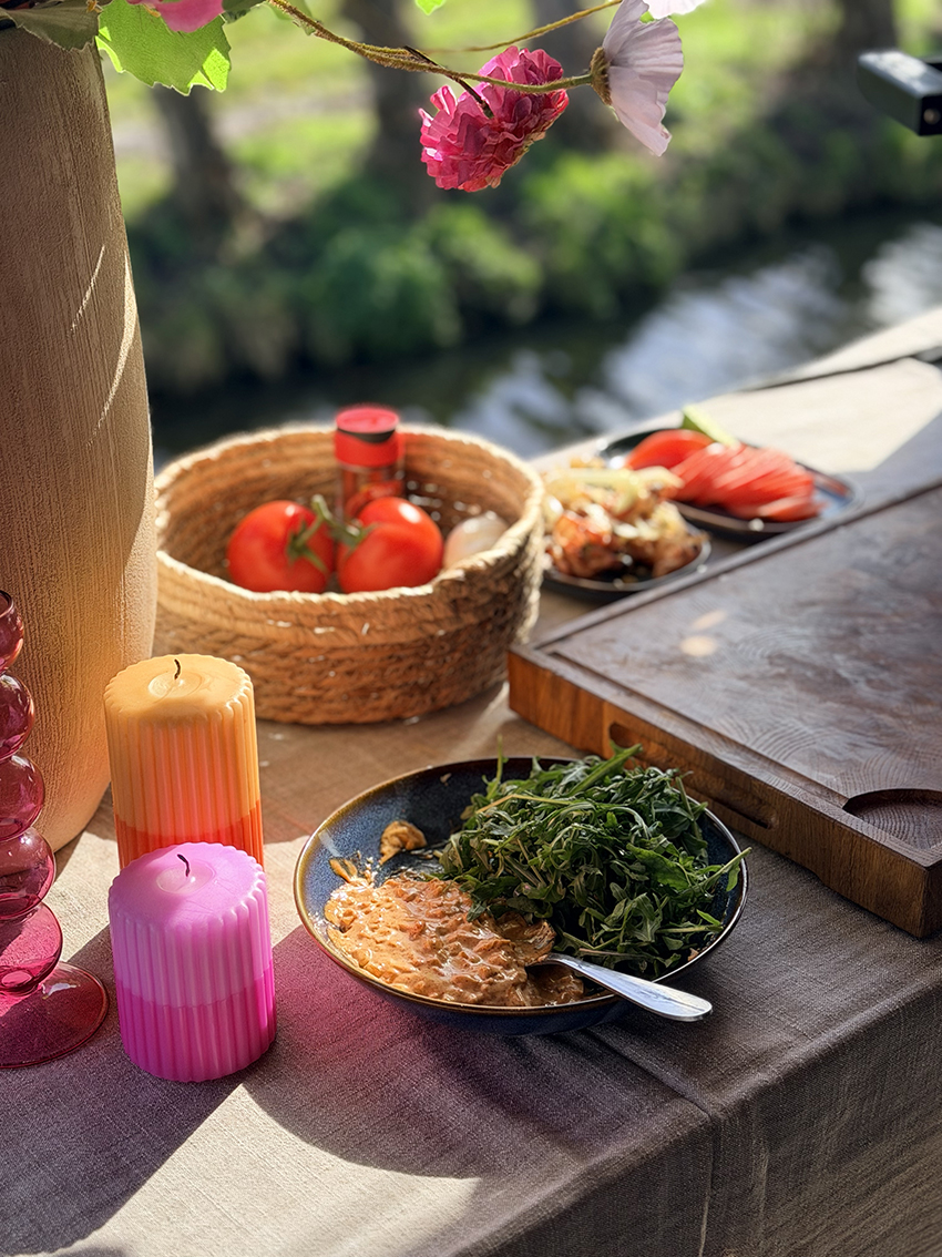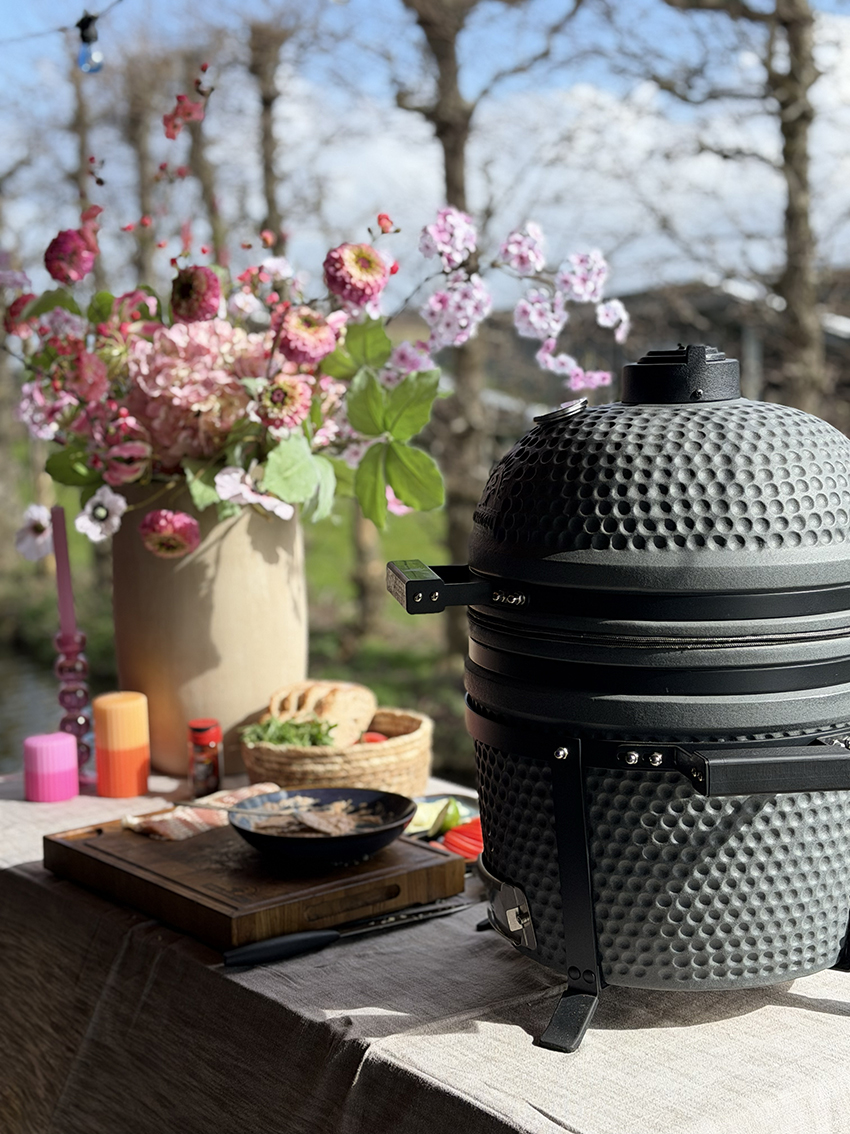Steek de BBQ aan en laat ‘m opwarmen tot ongeveer 160°C. Smeer ondertussen de plaat en het rooster licht in met bijvoorbeeld olijfolie. Snijd alvast de tomaat en ui, zodat alles klaar ligt. Daarna maak je de saus: meng 2 eetlepels mayonaise met 1 geperst teentje knoflook, het sap van een halve limoen en ½ theelepel Chipotle poeder. Even goed roeren en klaar!
